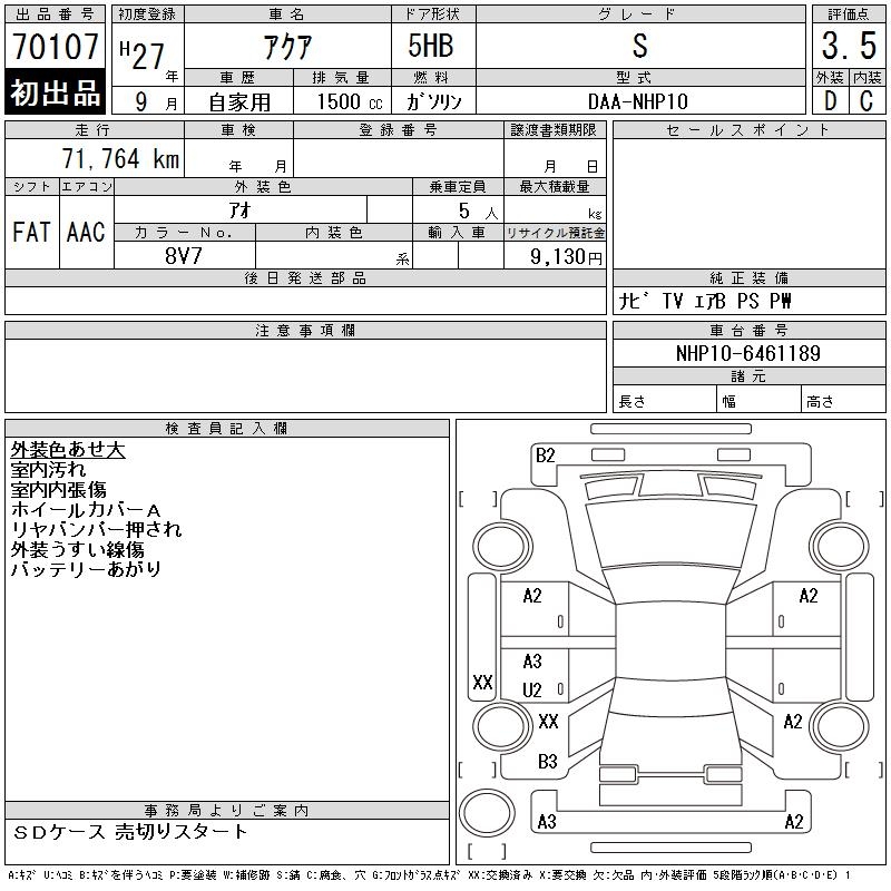 TOYOTA AQUA - лот 70107