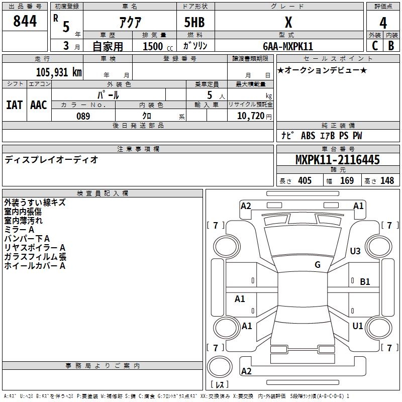 TOYOTA AQUA - лот 844