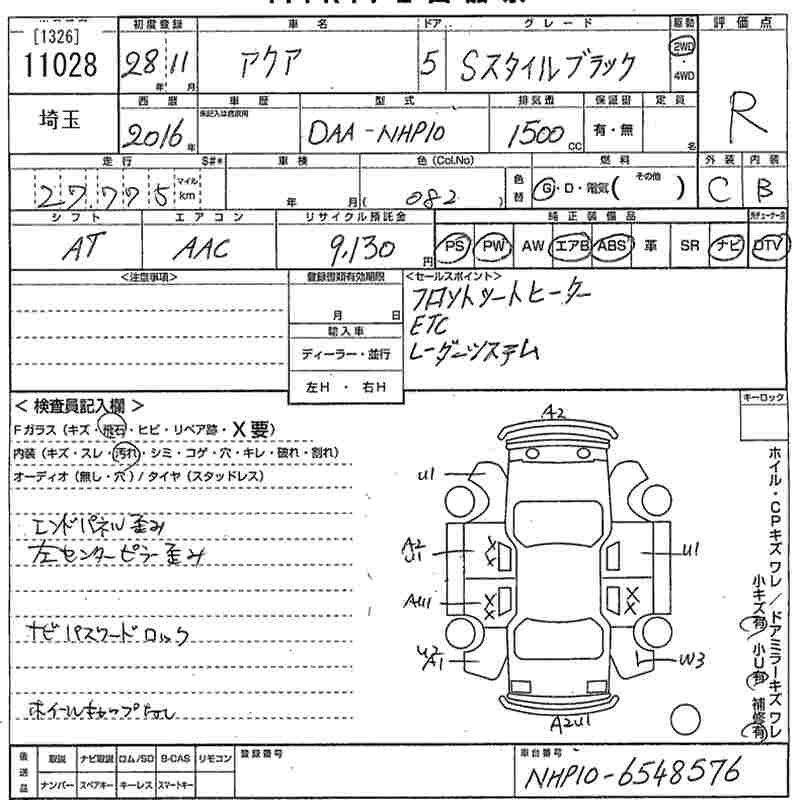 TOYOTA AQUA - лот 11028