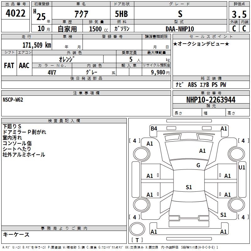 TOYOTA AQUA - лот 4022