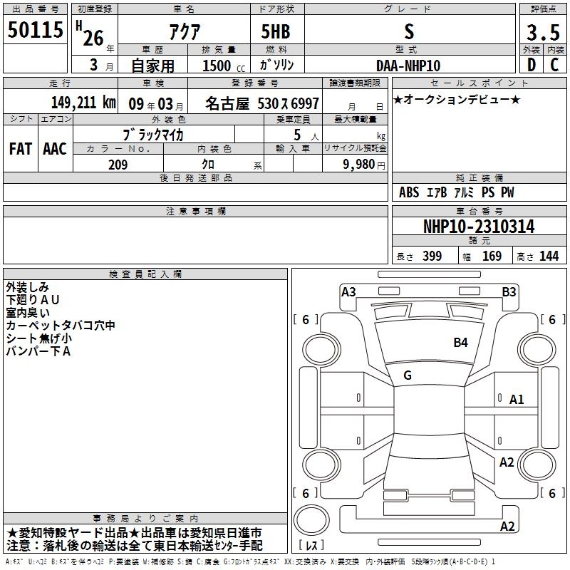 TOYOTA AQUA - лот 50115