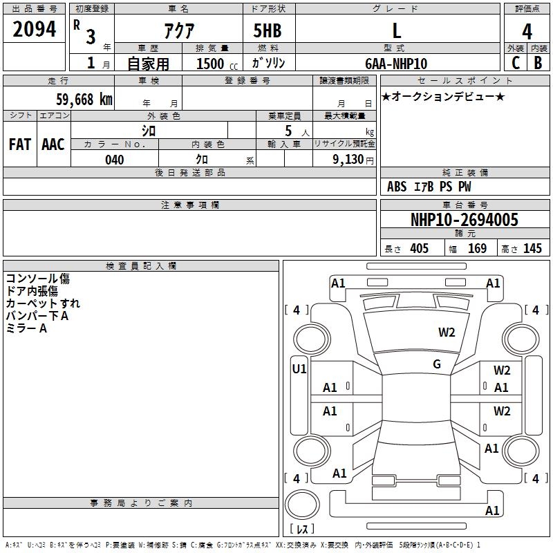 TOYOTA AQUA - лот 2094