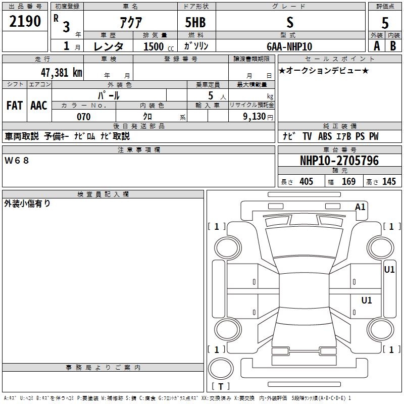 TOYOTA AQUA - лот 2190