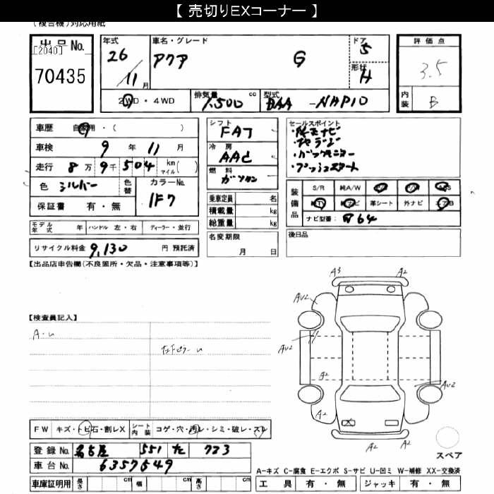 TOYOTA AQUA - лот 70435