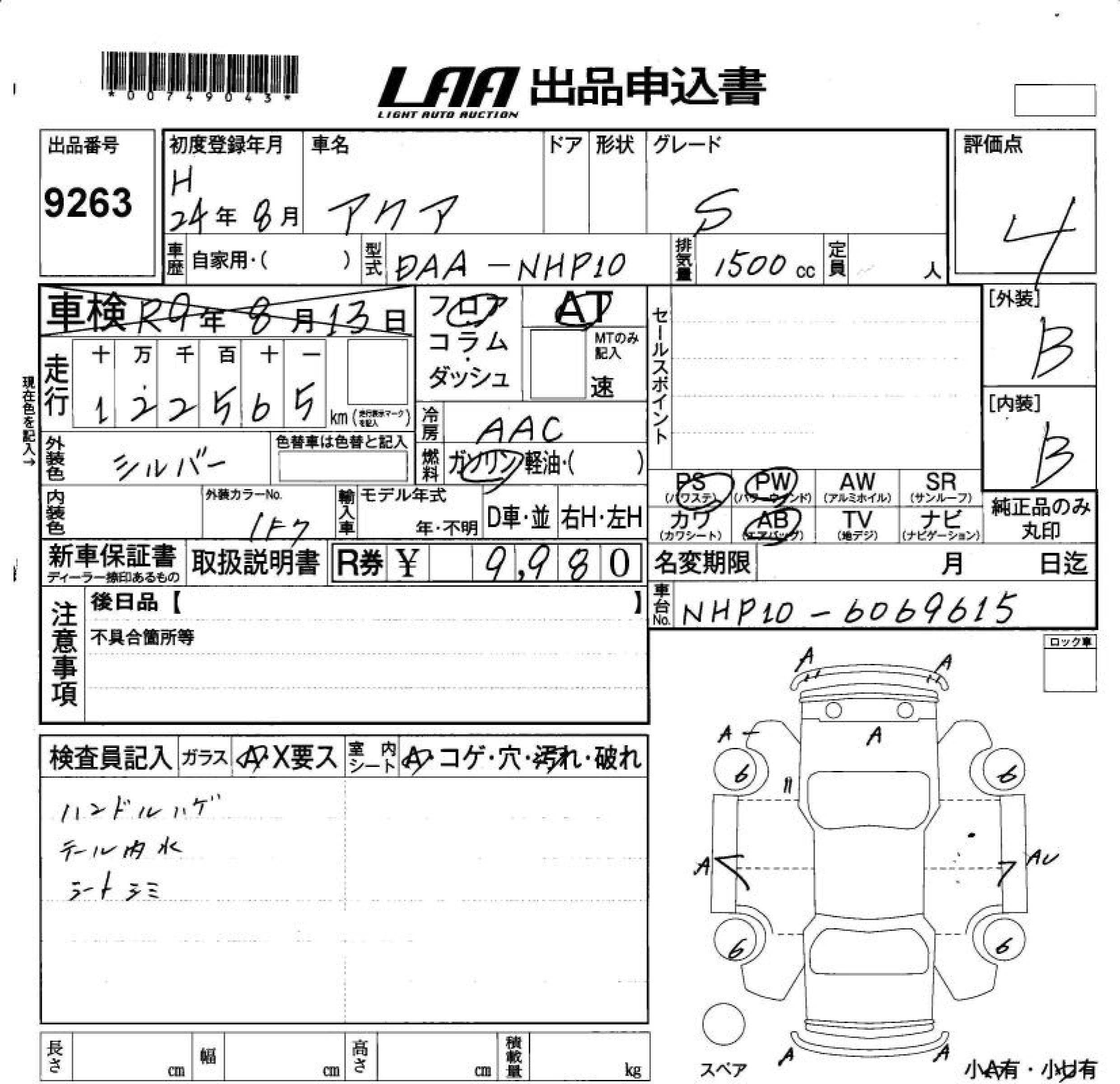 TOYOTA AQUA - лот 9263