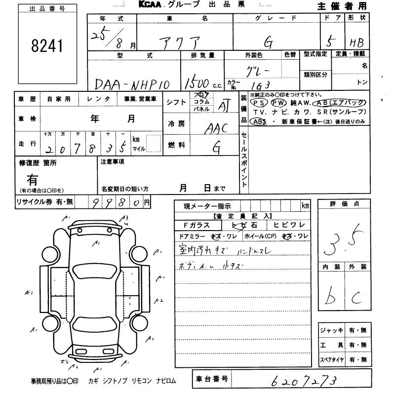 TOYOTA AQUA - лот 8241