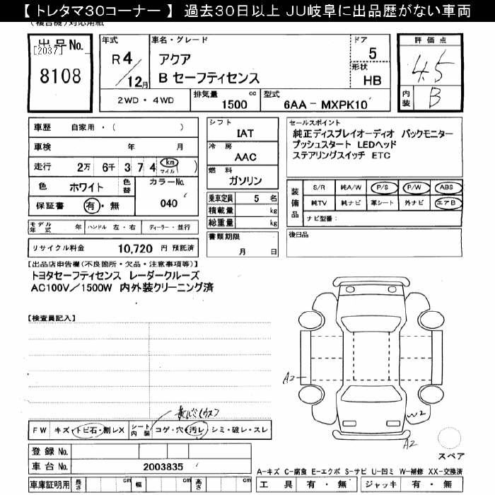 TOYOTA AQUA - лот 8108