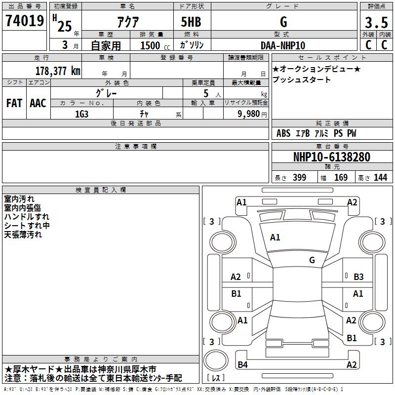 TOYOTA AQUA - лот 74019