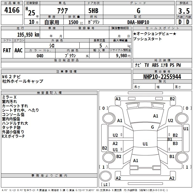 TOYOTA AQUA - лот 4166