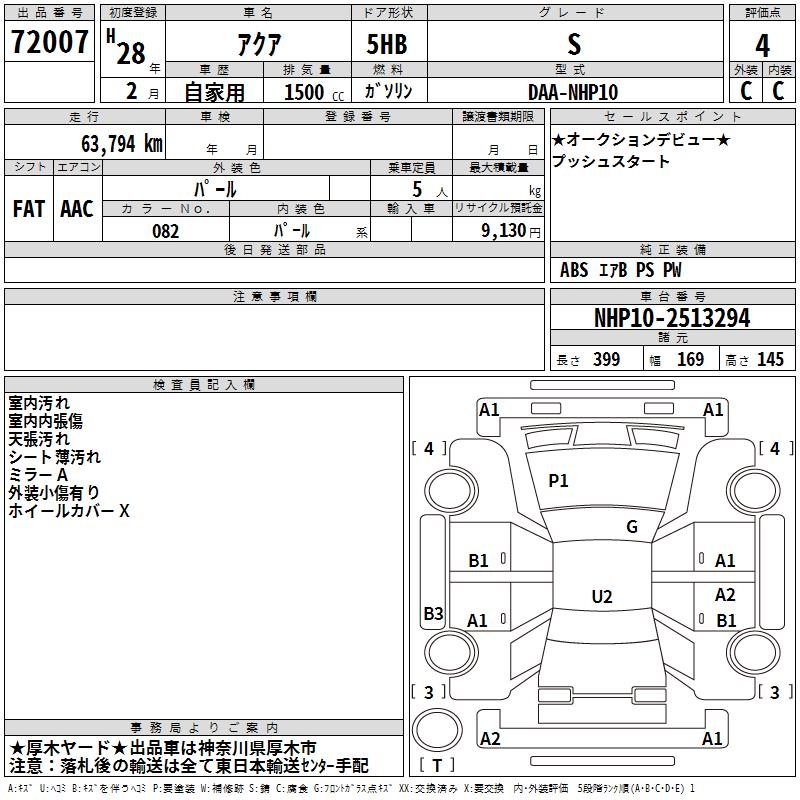 TOYOTA AQUA - лот 72007