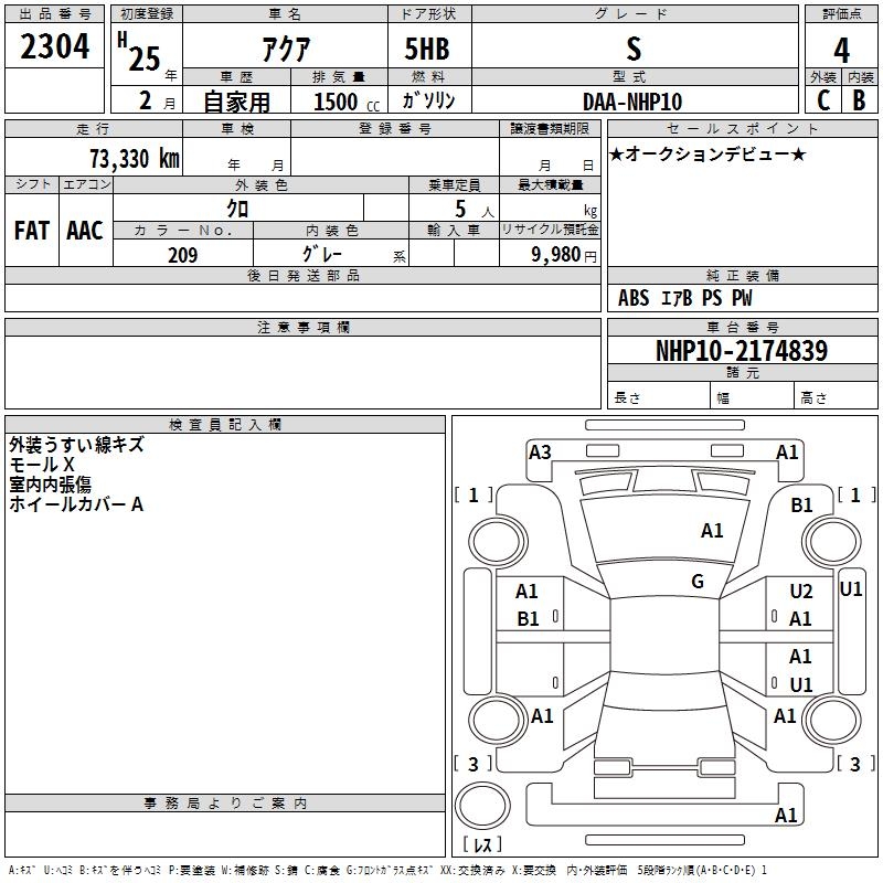 TOYOTA AQUA - лот 2304