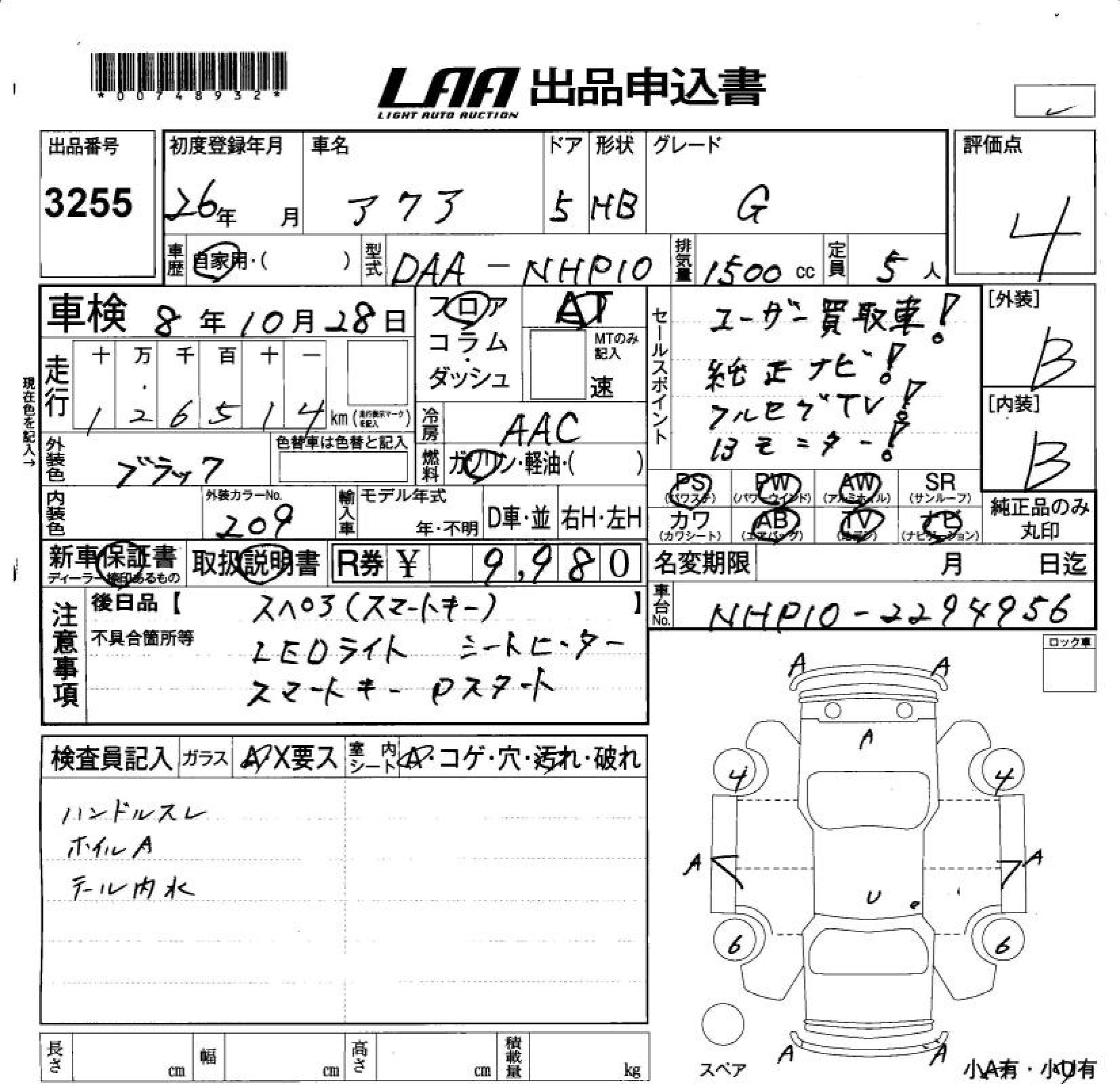 TOYOTA AQUA - лот 3255