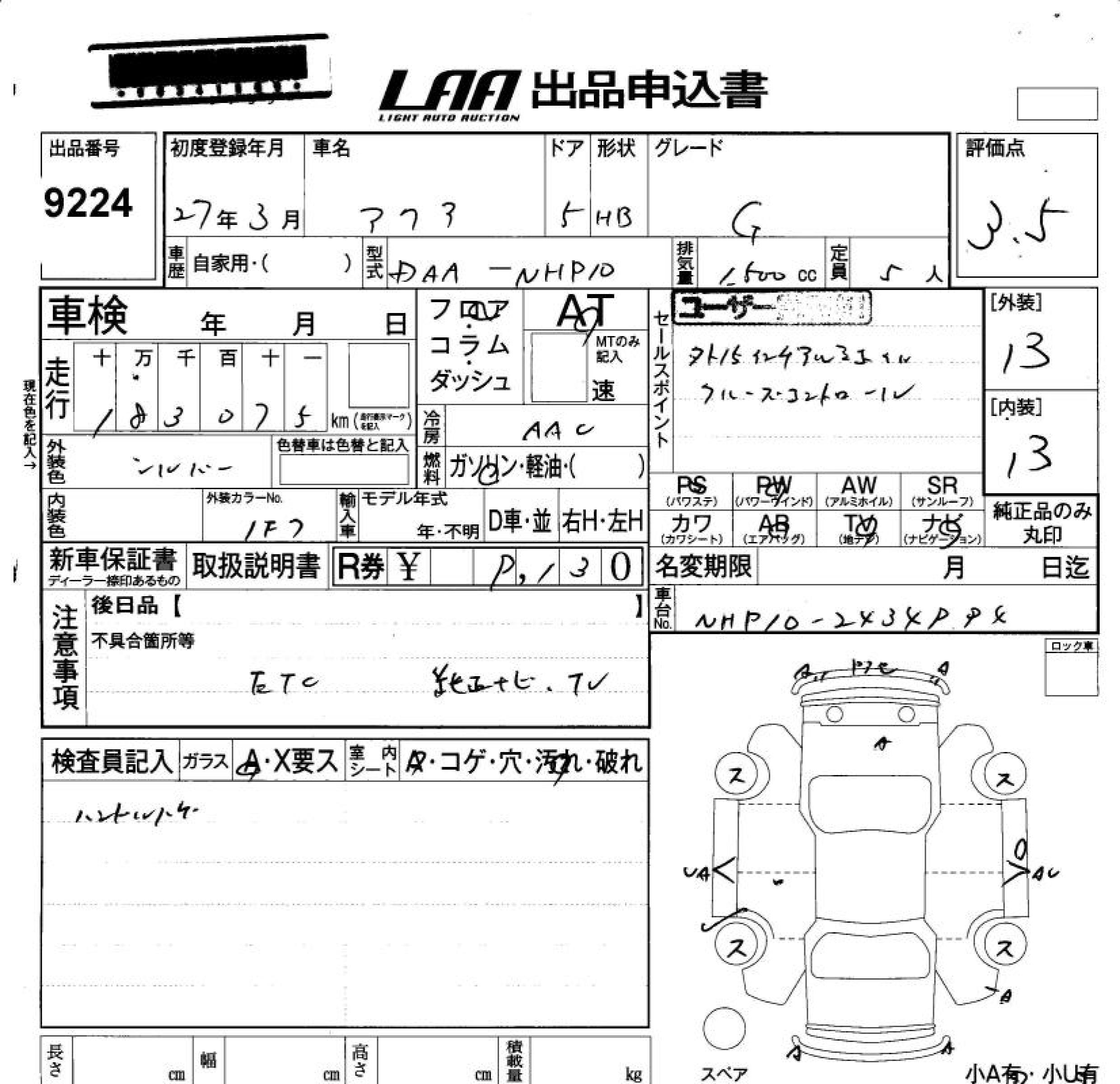 TOYOTA AQUA - лот 9224