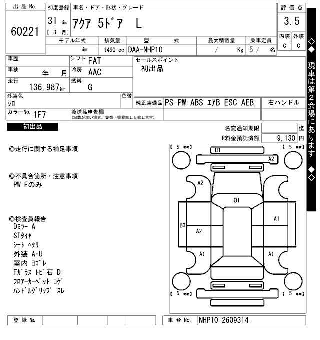 TOYOTA AQUA - лот 60221