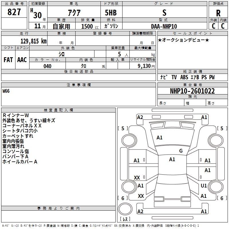 TOYOTA AQUA - лот 827