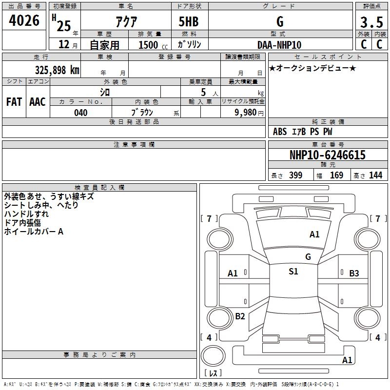 TOYOTA AQUA - лот 4026