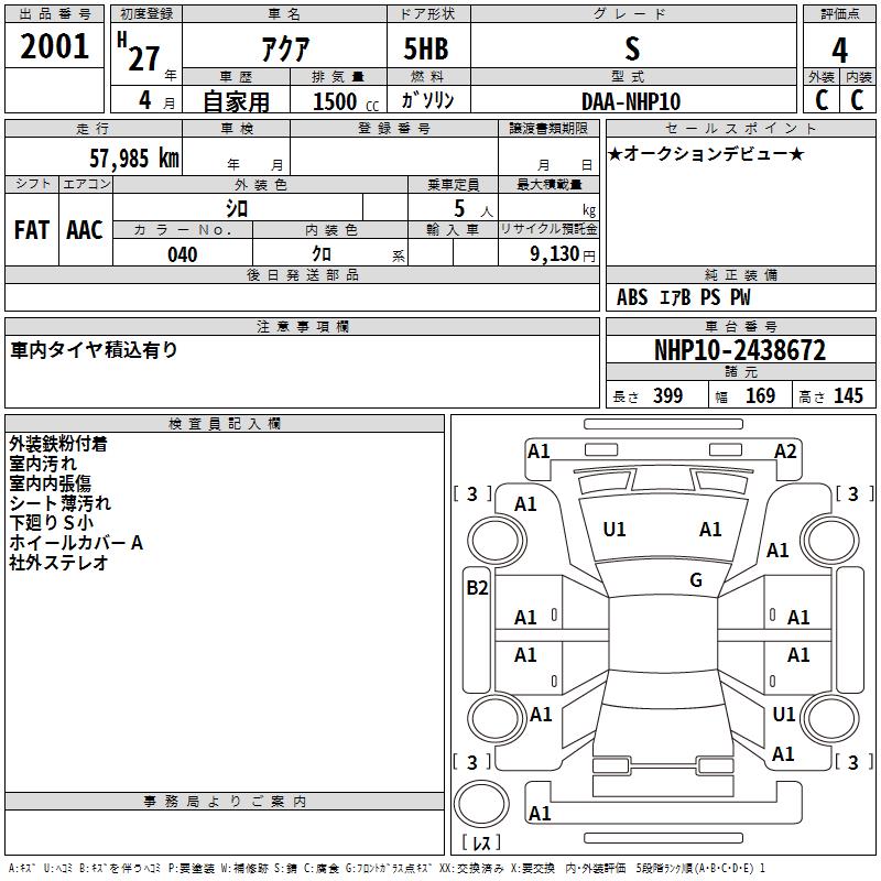 TOYOTA AQUA - лот 2001