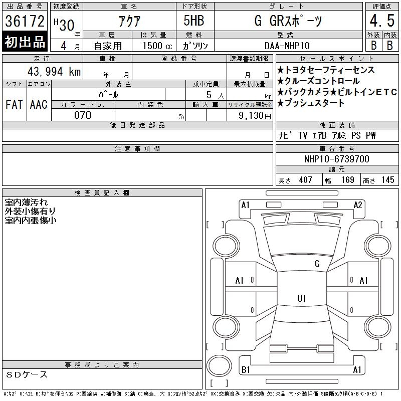 TOYOTA AQUA - лот 36172