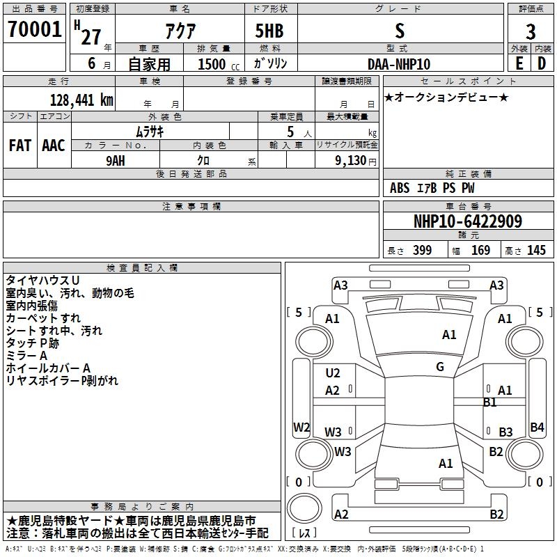 TOYOTA AQUA - лот 70001