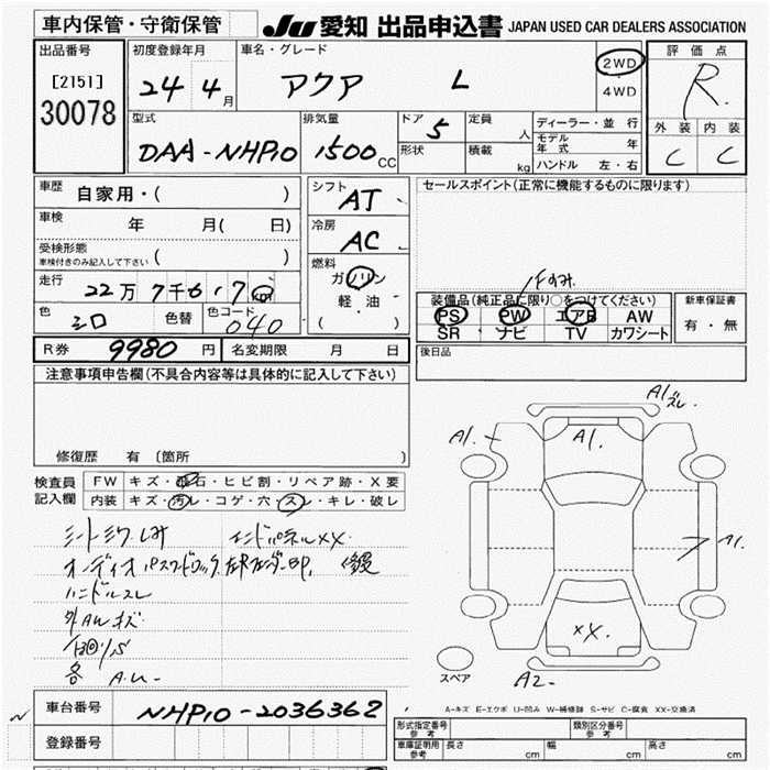 TOYOTA AQUA - лот 30078