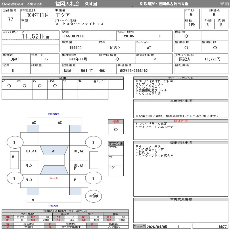 TOYOTA AQUA - лот 77