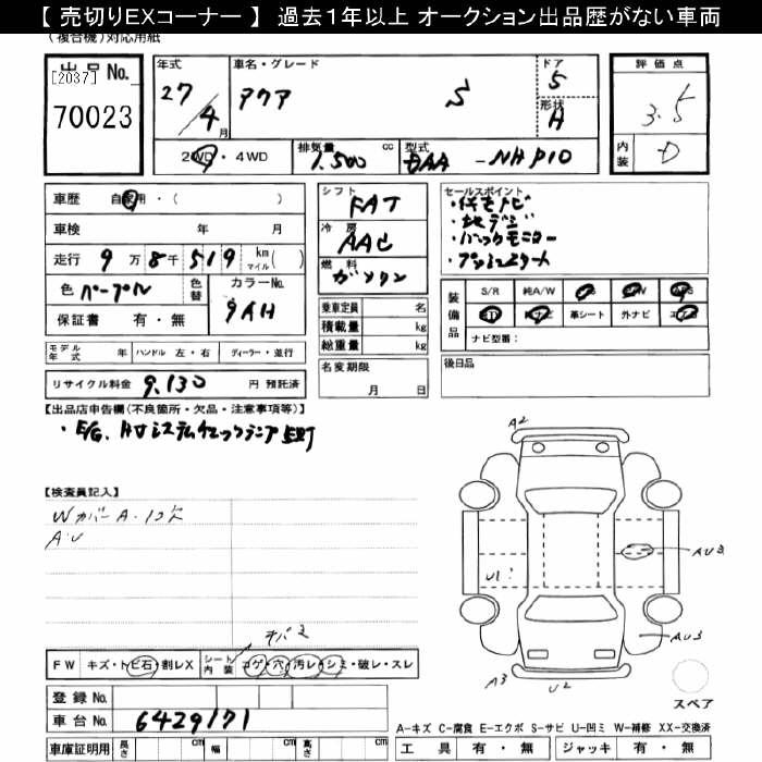 TOYOTA AQUA - лот 70023