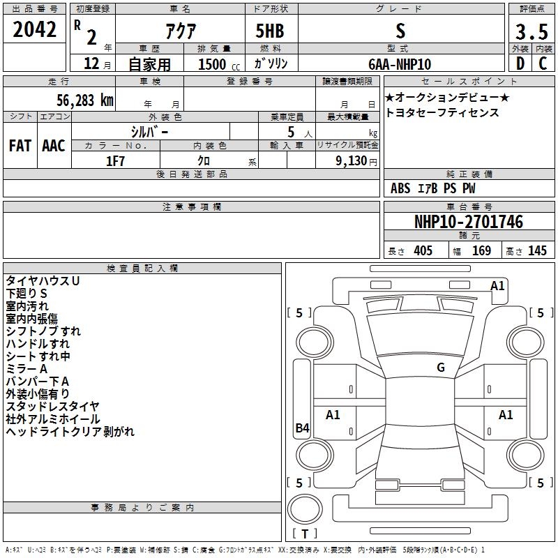 TOYOTA AQUA - лот 2042