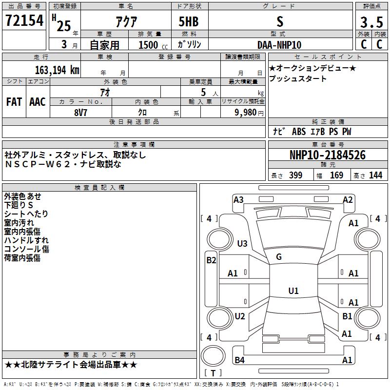 TOYOTA AQUA - лот 72154