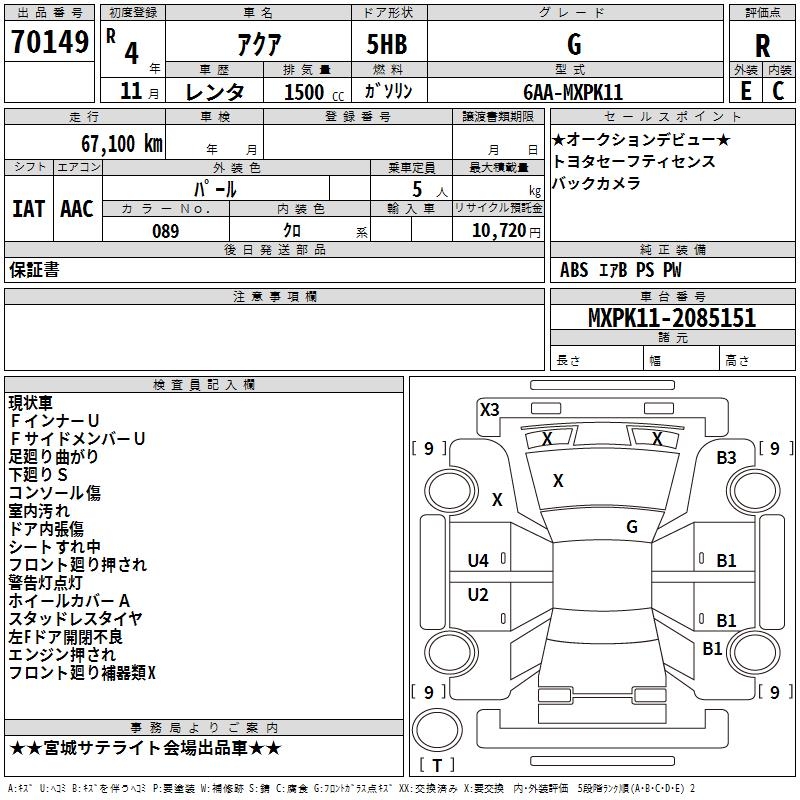 TOYOTA AQUA - лот 70149