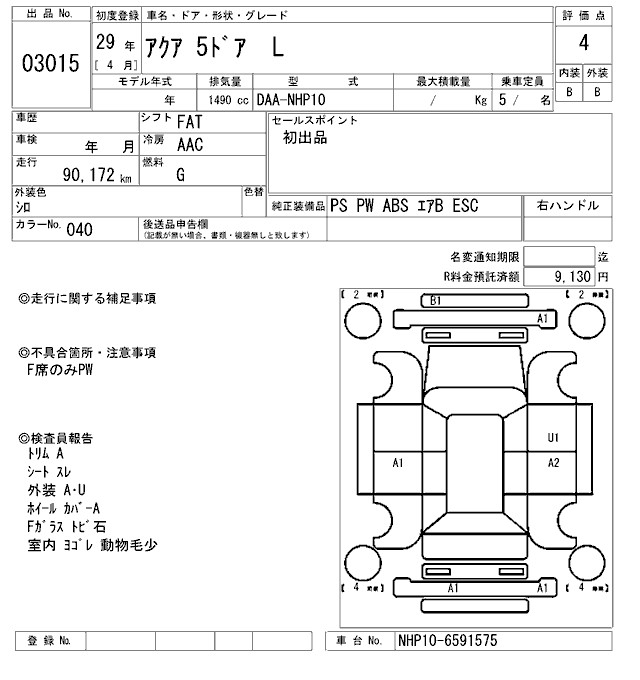 TOYOTA AQUA - лот 3015