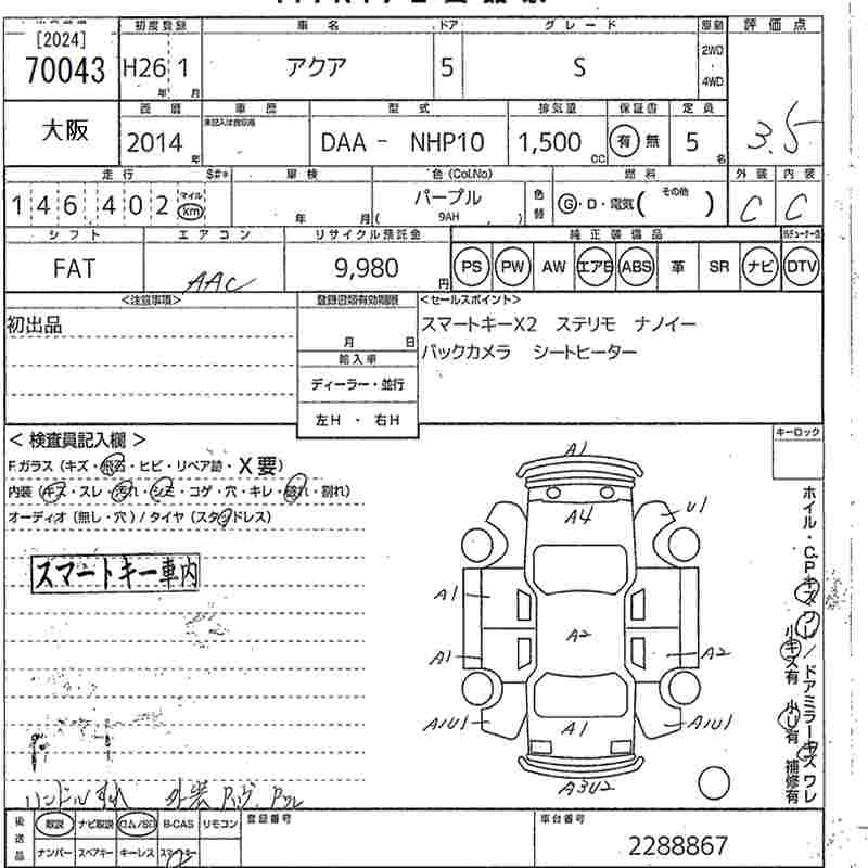 TOYOTA AQUA - лот 70043