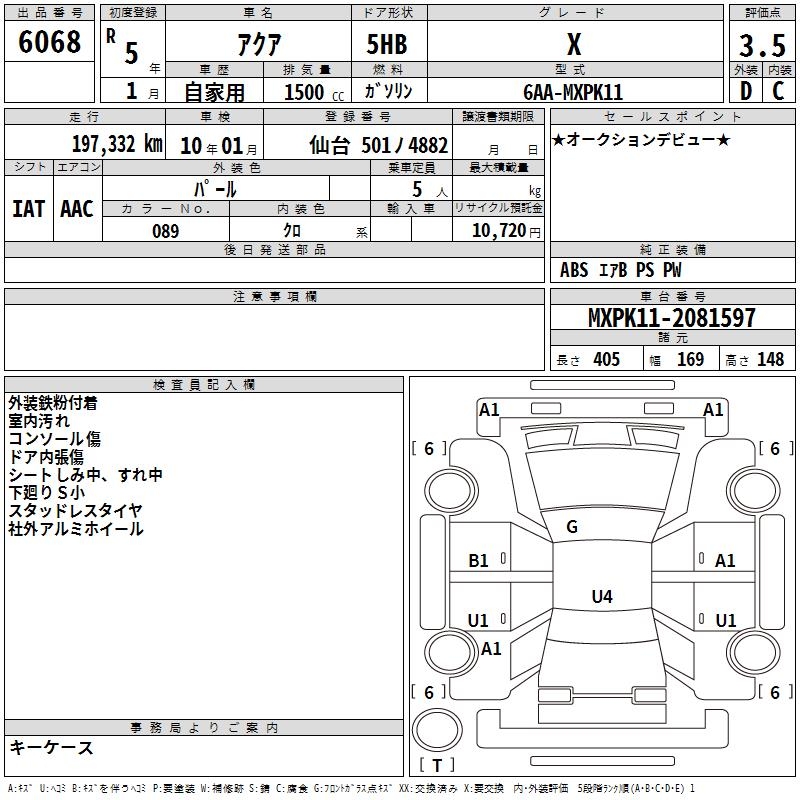 TOYOTA AQUA - лот 6068