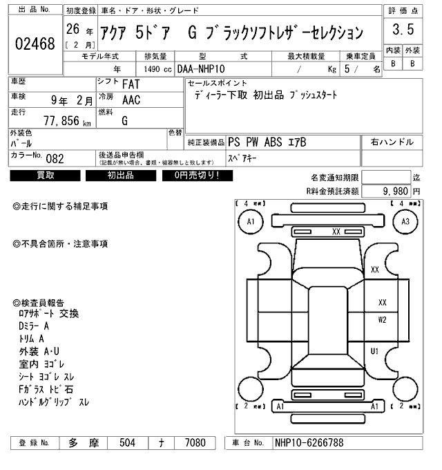 TOYOTA AQUA - лот 2468