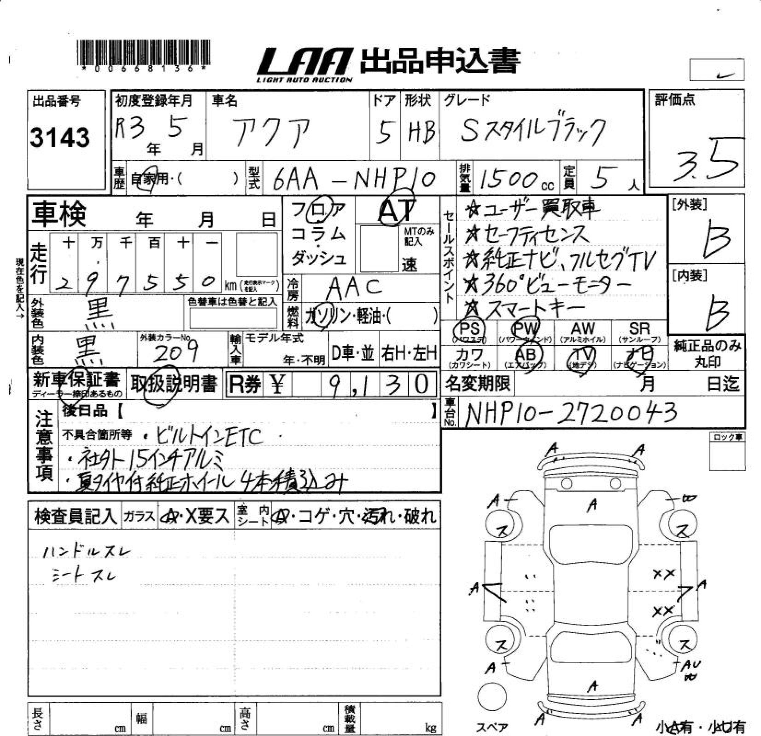 TOYOTA AQUA - лот 3143