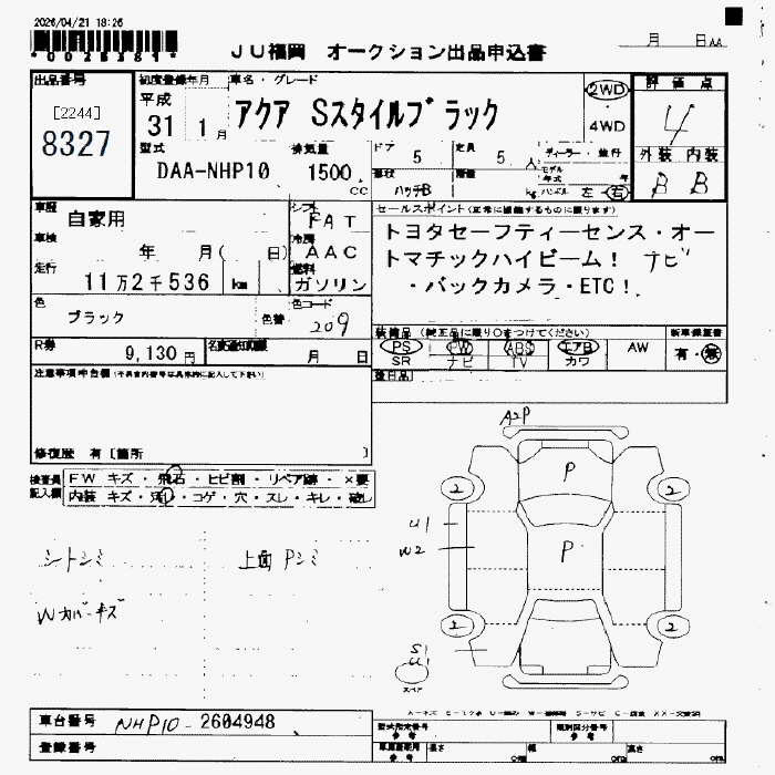 TOYOTA AQUA - лот 8327