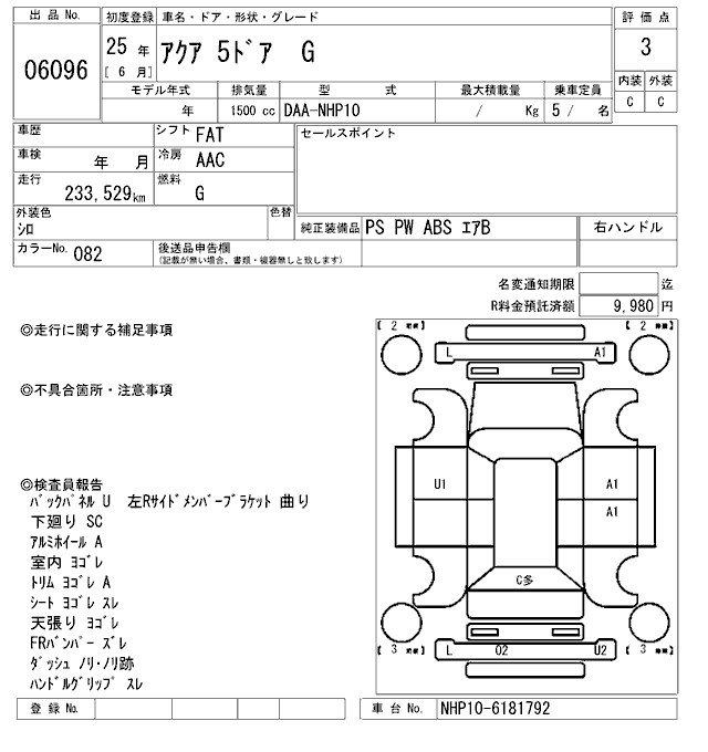 TOYOTA AQUA - лот 6096