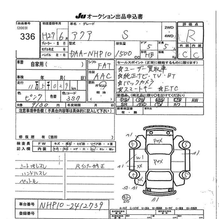 TOYOTA AQUA - лот 336