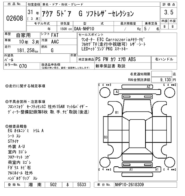 TOYOTA AQUA - лот 2608