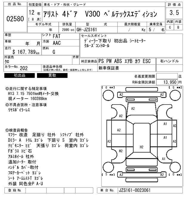 TOYOTA ARISTO - лот 2580
