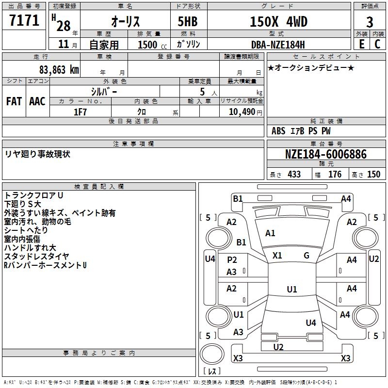 TOYOTA AURIS 150X 4WD - лот 7171