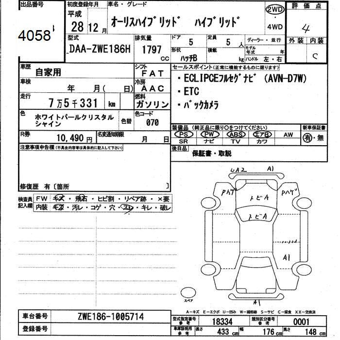 TOYOTA AURIS HYBRID - лот 4058