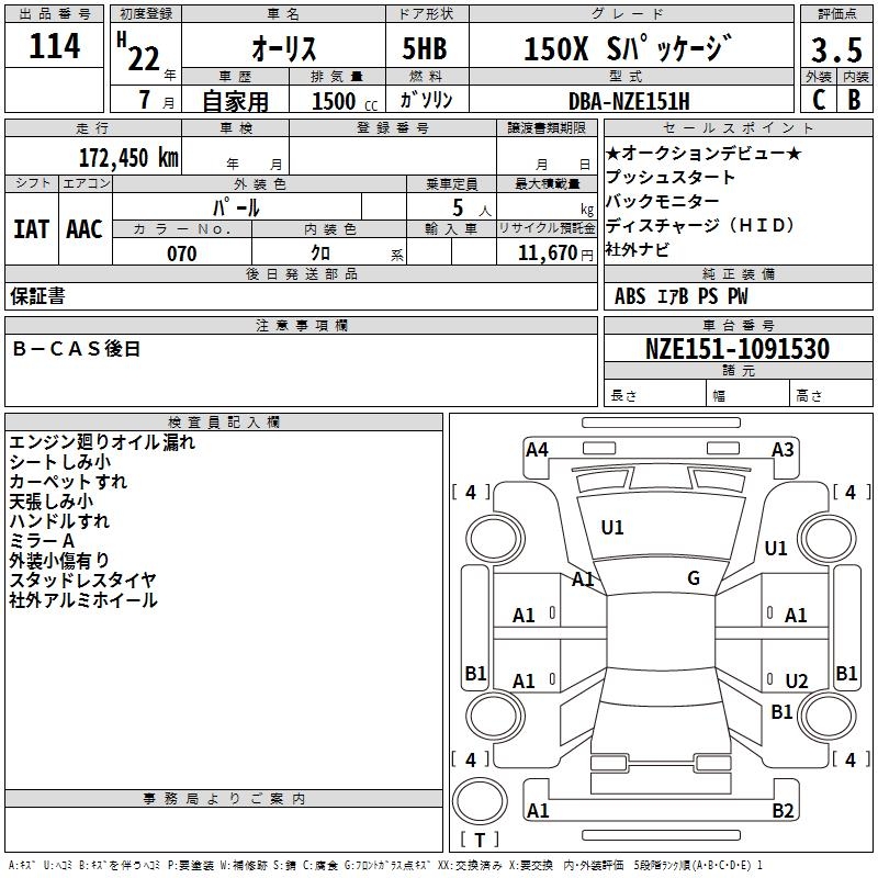 TOYOTA AURIS 150X S PACKAGE - лот 114