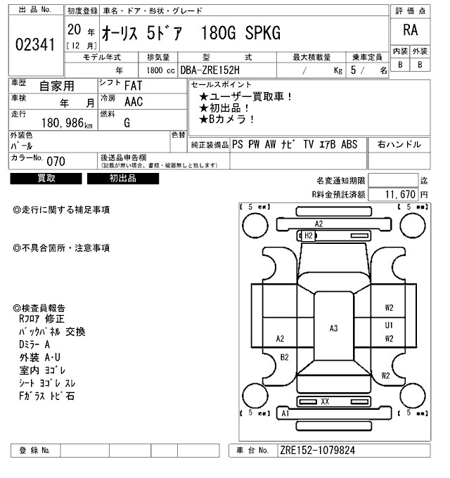 TOYOTA AURIS 180G SPKG - лот 2341