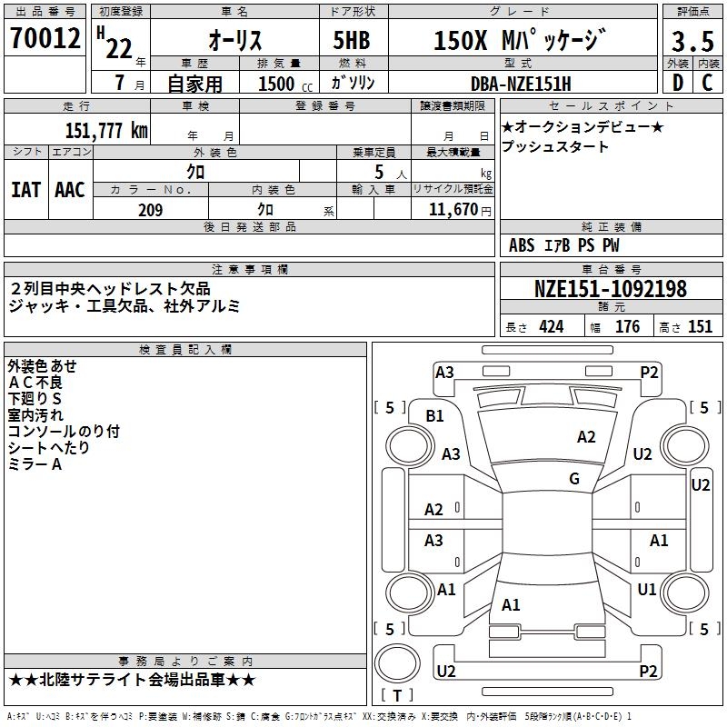 TOYOTA AURIS 150X M PACKAGE - лот 70012