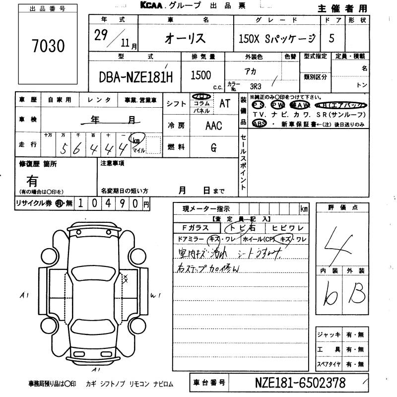 TOYOTA AURIS 150X S PACKAGE - лот 7030