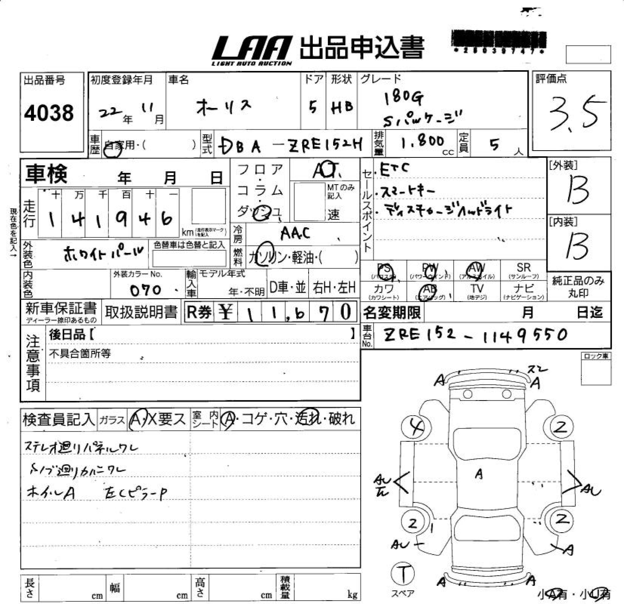 TOYOTA AURIS 180G S PACKAGE - лот 4038