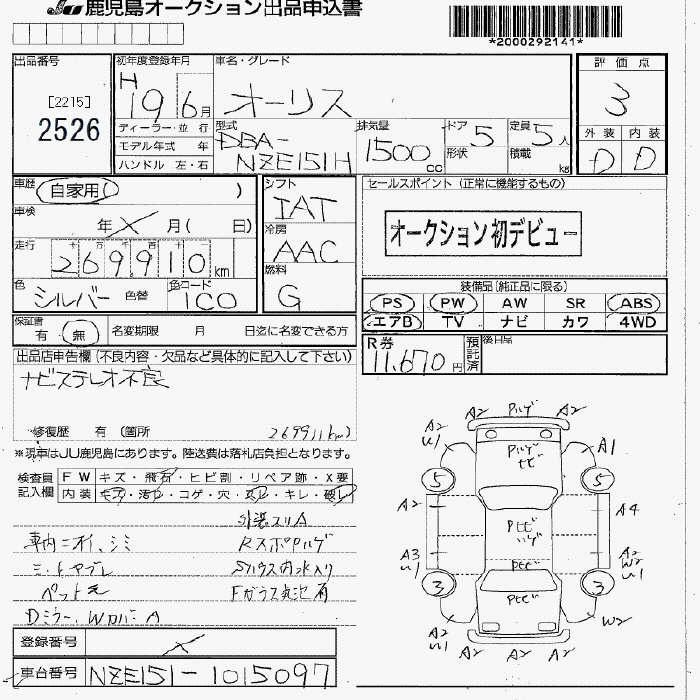 TOYOTA AURIS - лот 2526
