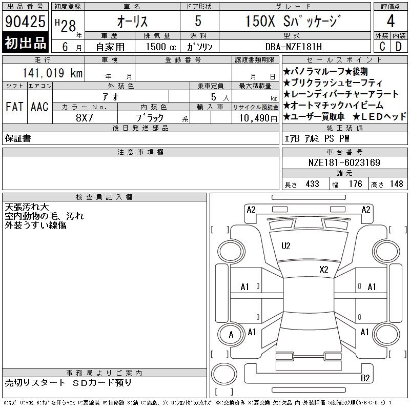 TOYOTA AURIS 150X S PACKAGE - лот 90425