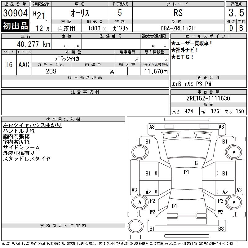TOYOTA AURIS RS - лот 30904