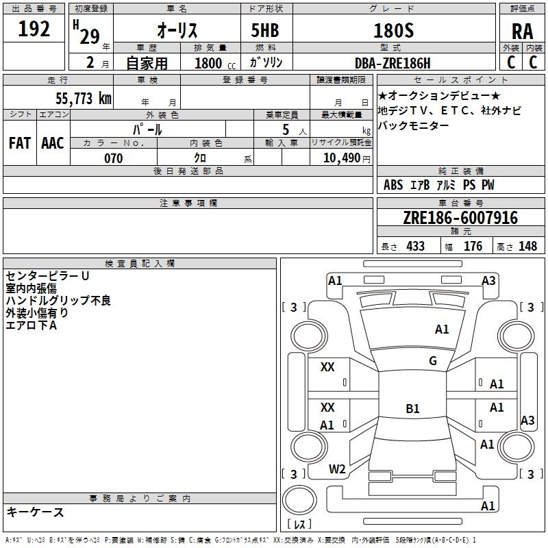 TOYOTA AURIS 180S - лот 192